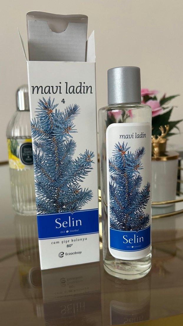 Selin Mavi Ladin cam şişe kolonyası, 80° alkol oranı ve ferah mavi ladin kokusuyla sunulmaktadır. #kolonya #mavi
