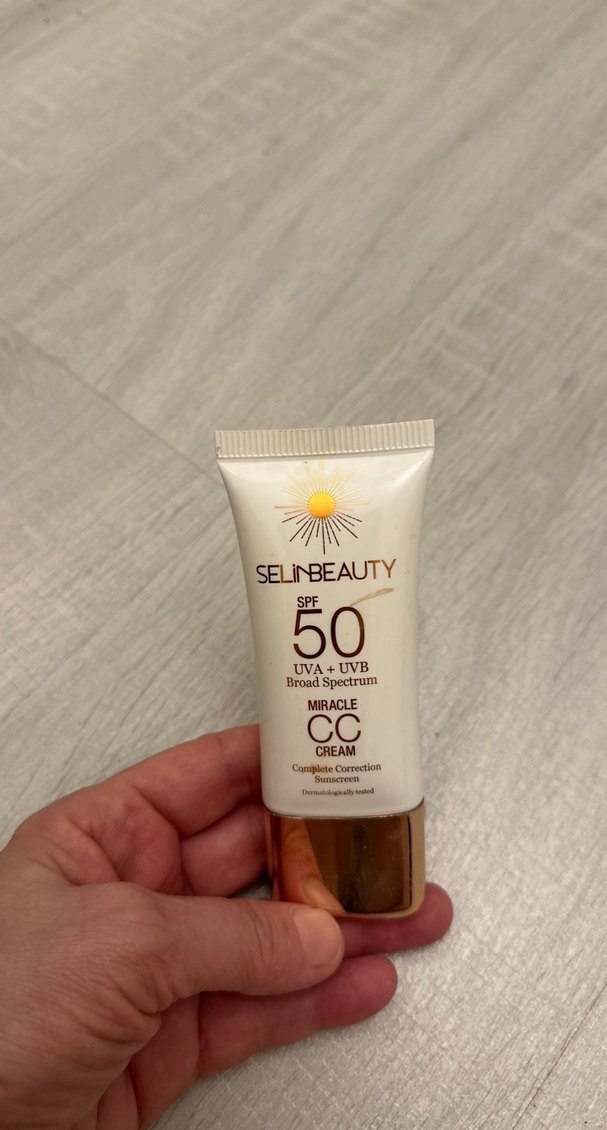 SelinBeauty CC krem, SPF 50 ile geniş spektrum UVA ve UVB koruması sağlar. Parlak bej tonunda olup cilt tonunu düzeltir ve güneş koruyucudur. ☀️