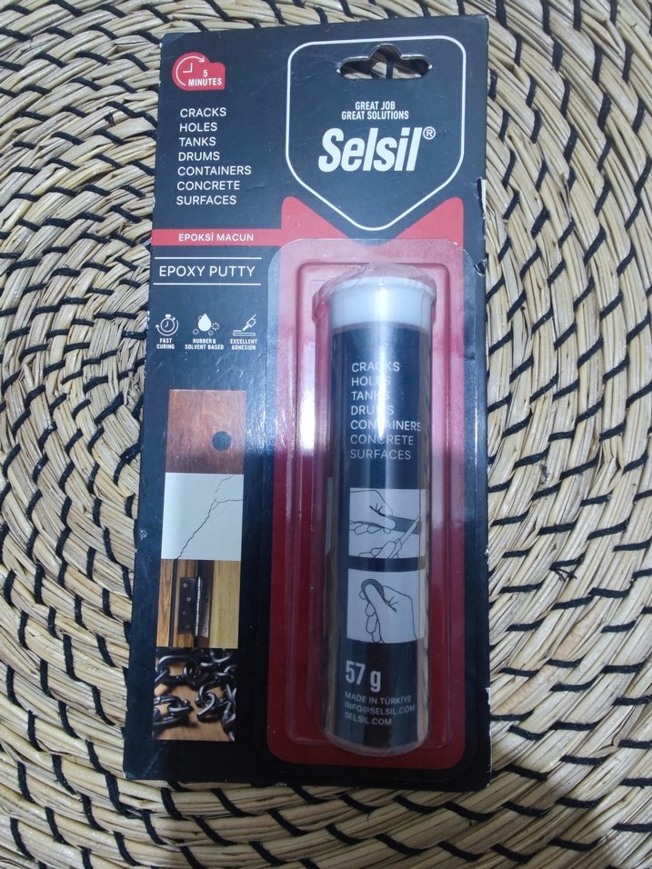Selsil epoksi macun, çatlaklar, delikler, tanklar, tamburlar ve beton yüzeyler için uygundur. 3 dakikada sertleşir ve suya dayanıklıdır. ️