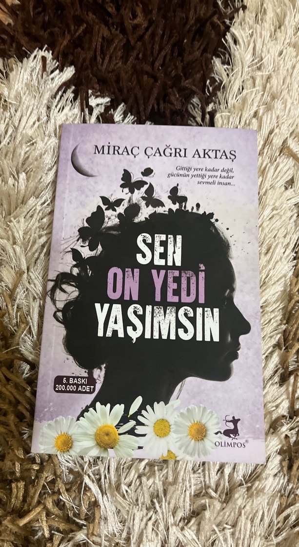 Miraç Çağrı Aktaş'ın "Sen On Yedi Yaşımsın" adlı romanı, gençlik ve duyguların derinliklerini keşfediyor. Olimpos yayınevinden, kapakta kelebekler ve papatyalar var.