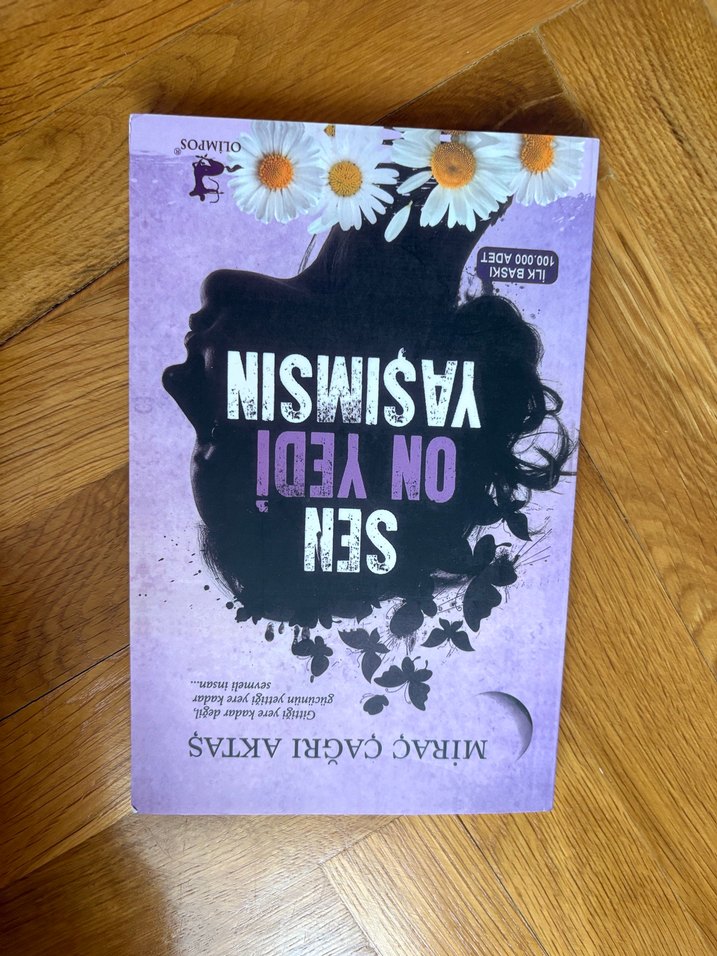 Miraç Çağrı Aktaş'ın "Sen On Yedi Yaşımsın" romanı, papatyalar ve kız siluetiyle mor kapaklıdır. Gençlik ve kendini keşfetme temalarını işler.