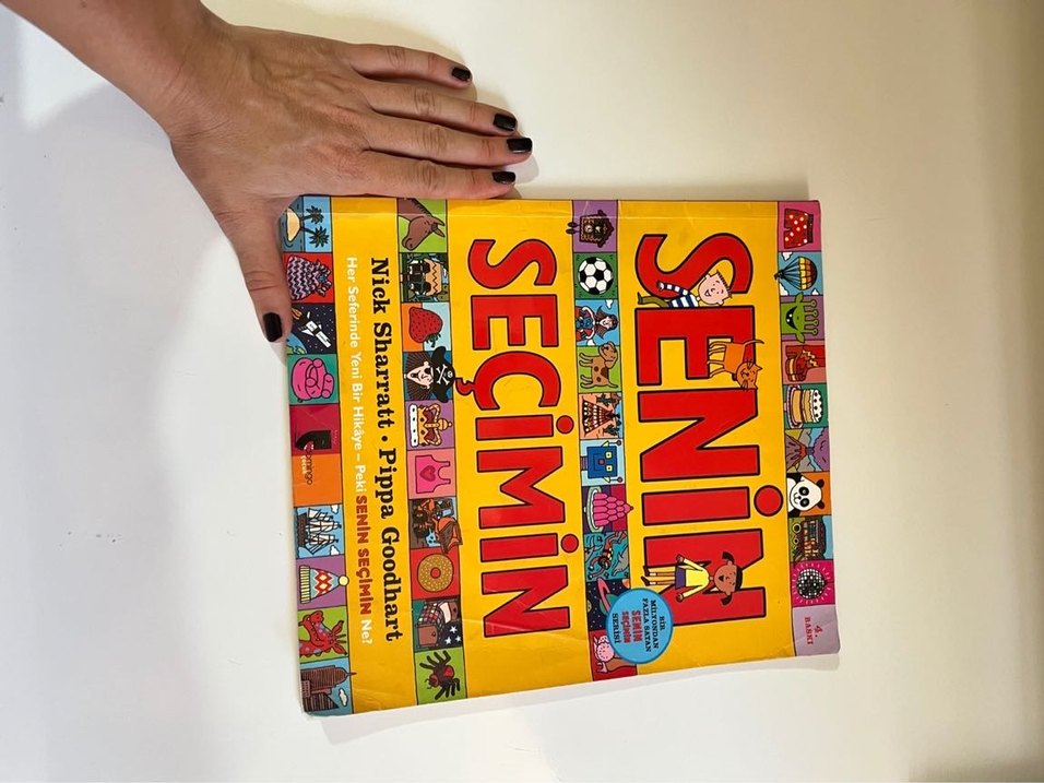 Nick Sharratt ve Pippa Goodhart tarafından yazılmış, canlı renkli ve etkileşimli çizimlere sahip çocuk kitabı 'Seni Seçimin'. Kitap defalarca üzerinde çocugunuzla konusabileceginiz hayal gücünü geliştirebilecek harika bir kitap. Ciddi bi defarmasyon yok. Fotoda attıgım gibi.