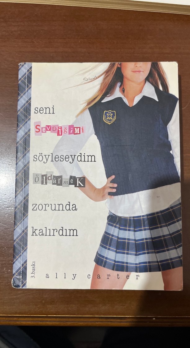 Ally Carter'ın 'Seni Sevdiğimi Söyleseydim Öldürmek Zorunda Kalırdım' adlı romanı, kapakta okul üniformalı bir kız yer alıyor.