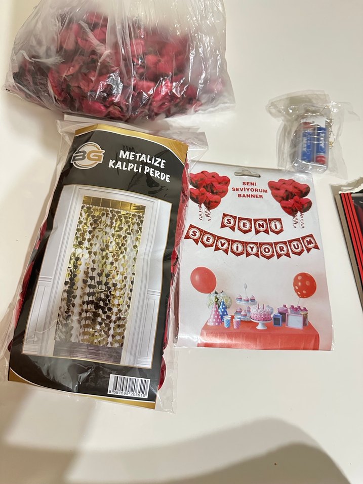 Seni Seviyorum' yazılı banner içeren parti seti. Romantik kutlamalar için uygun paket
