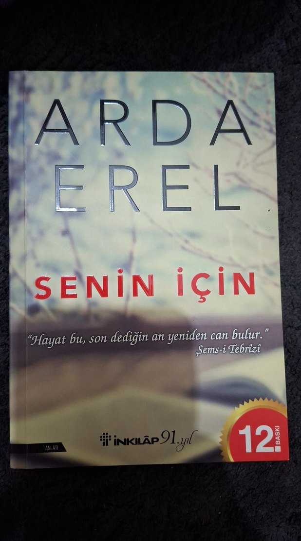 Arda Erel'in "Senin İçin" kitabı, Şems-i Tebrizi'den "Hayat bu, son dediğin an yeniden can bulur." alıntısıyla 12. baskı olarak İnkılap tarafından yayımlandı.