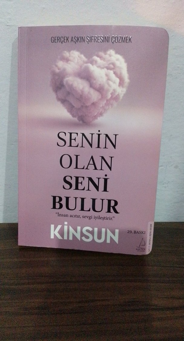 Kinsun'un "Senin Olan Seni Bulur" romanı, sevgi ve iyileşme temalarını işler. 29. baskı, pembe kapak ve kalp şekilli bulut görseli içerir.