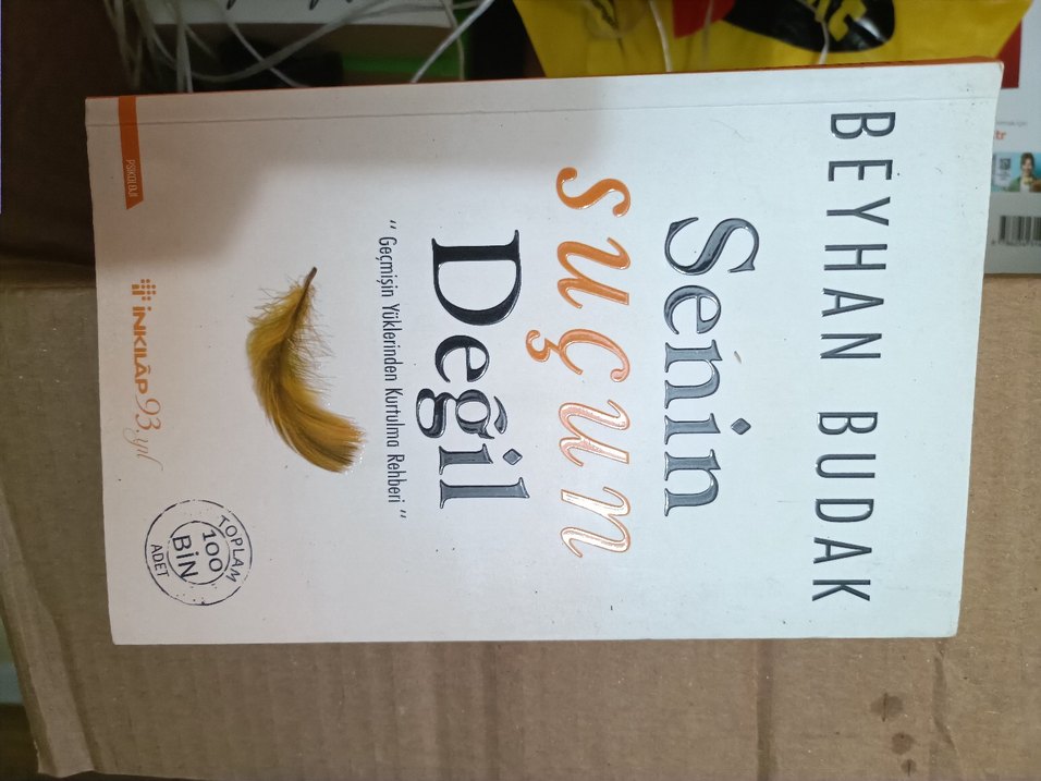 "Senin Suçun Değil" adlı şiir kitabı, suçluluk ve kurtuluş temalarını işler. Kapakta özgürlüğü simgeleyen bir tüy bulunur. fiyat sorunuz