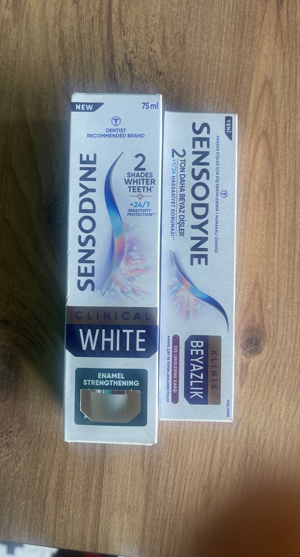 Sensodyne Klinik Beyazlık diş macunu, mine güçlendirme sağlar ve dişleri 2 ton daha beyaz yapar. 75ml tüpte, 24/7 hassasiyet koruması sunar.