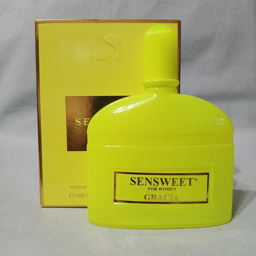 Sensweet Gracia, kadınlar için 100 ml'lik sarı şişede taze bir koku sunar. Vaporizer şişe ile pratik kullanım sağlar.