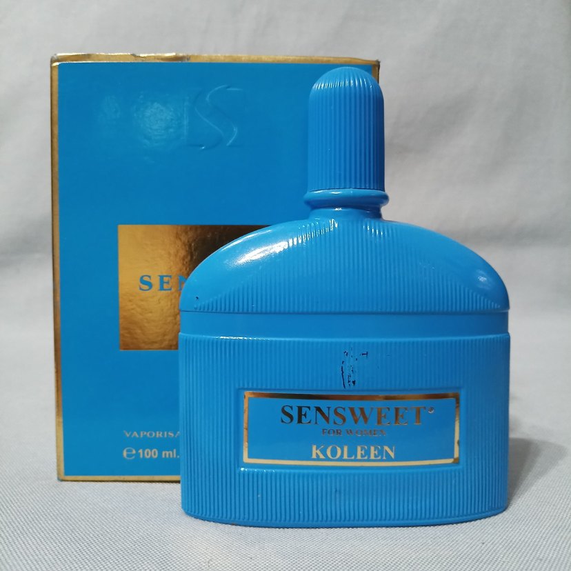 Koleen Sensweet kadın parfümü, 100 ml mavi şişede, ferah ve tatlı kokusuyla sunuluyor. Şık ambalajı benzersiz kokusunu vurgular.