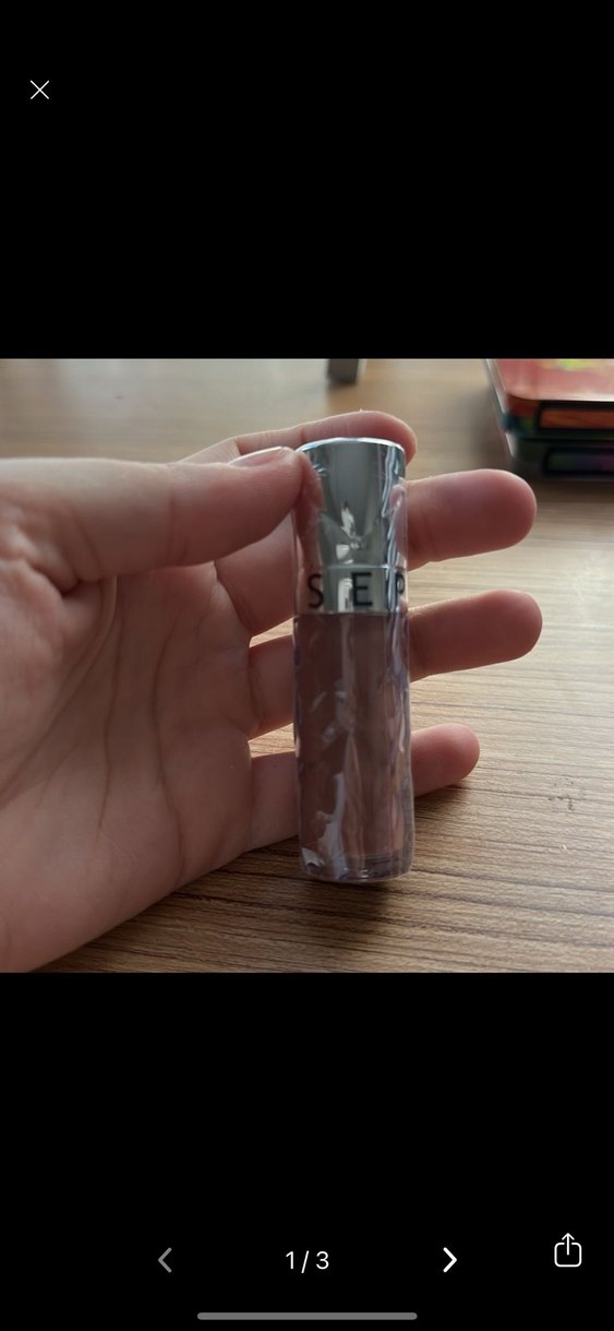 Bej renkte, parlak bitişli dudak parlatıcısı. Kolay uygulanabilir kompakt tüpte sunulur. acılmadı