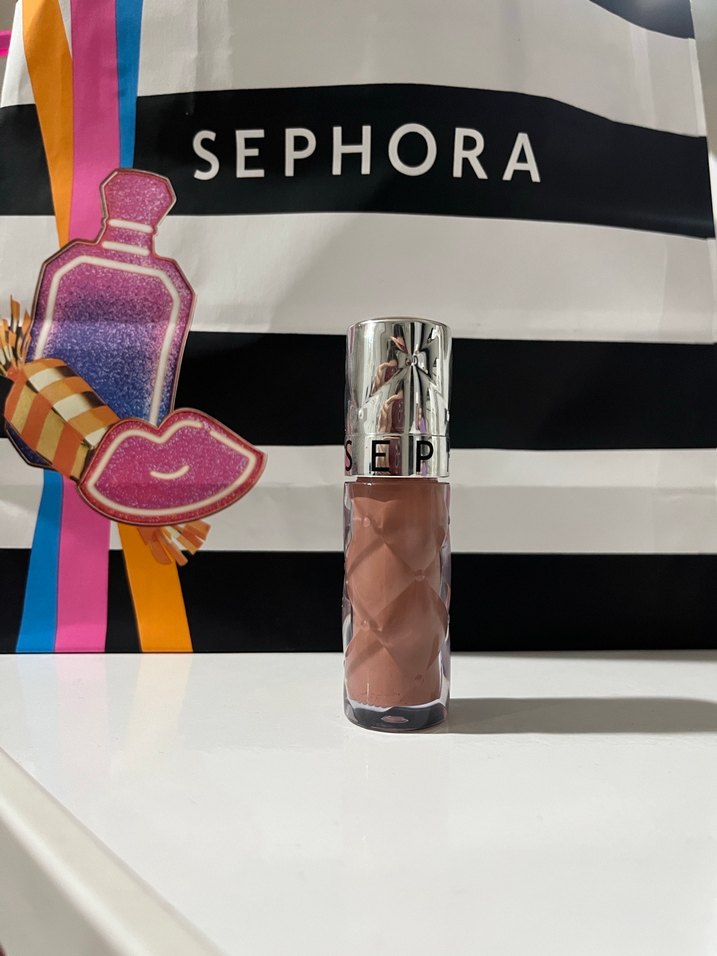 Sephora'dan parlak bitişli bej dudak parlatıcısı. Dudaklara pürüzsüz ve parlak bir görünüm verir.