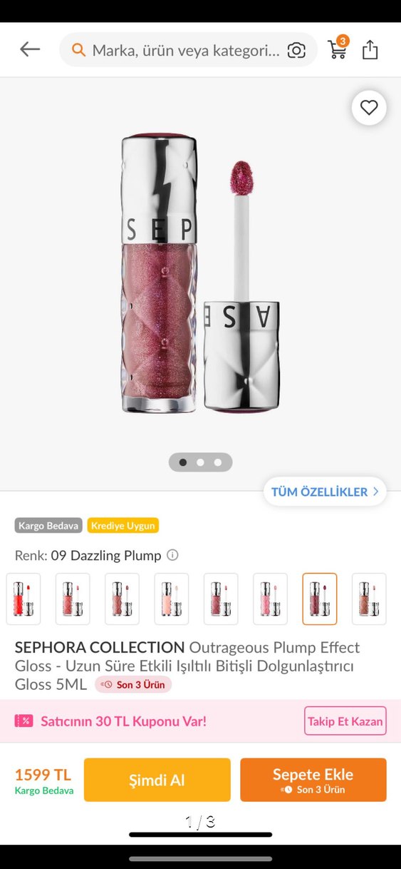 SEPHORA COLLECTION 09 Dazzling Plump Parlak Dudak Parlatıcısı