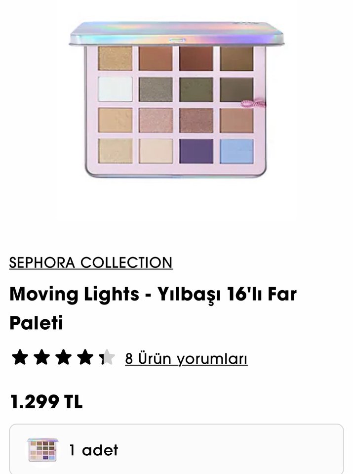 Sephora Collection Moving Lights paleti, bej ve canlı tonlarda 16 far içerir. Farklı göz makyajları için uygundur.