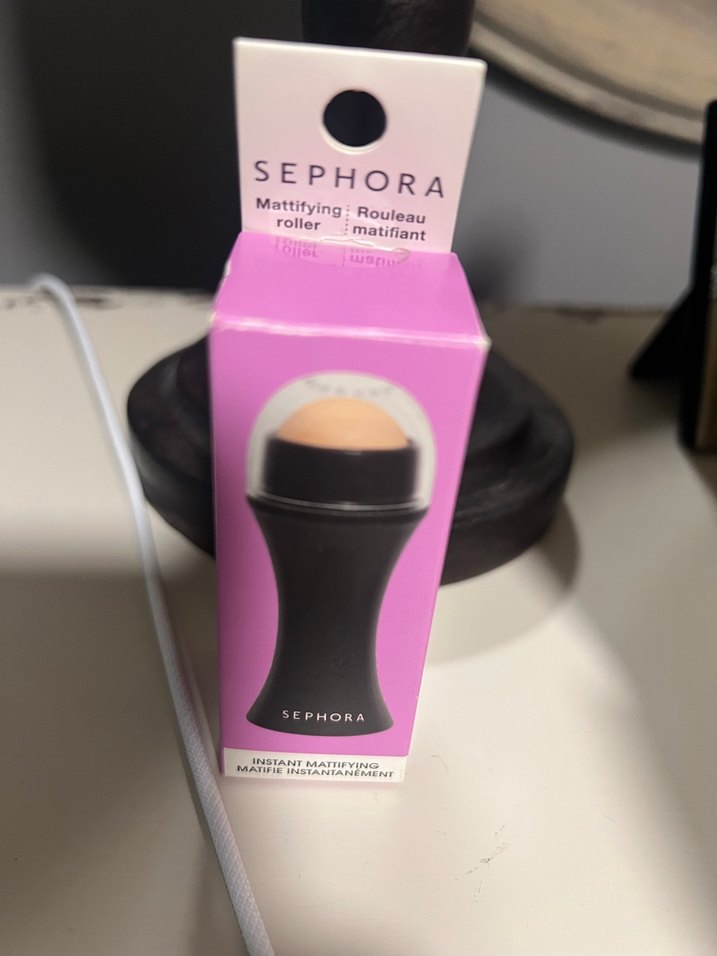 Sephora Matlaştırıcı Roller, cildi anında matlaştırmak için tasarlanmış, siyah saplı bej makyaj süngeri ile kolay uygulama sağlar. ️