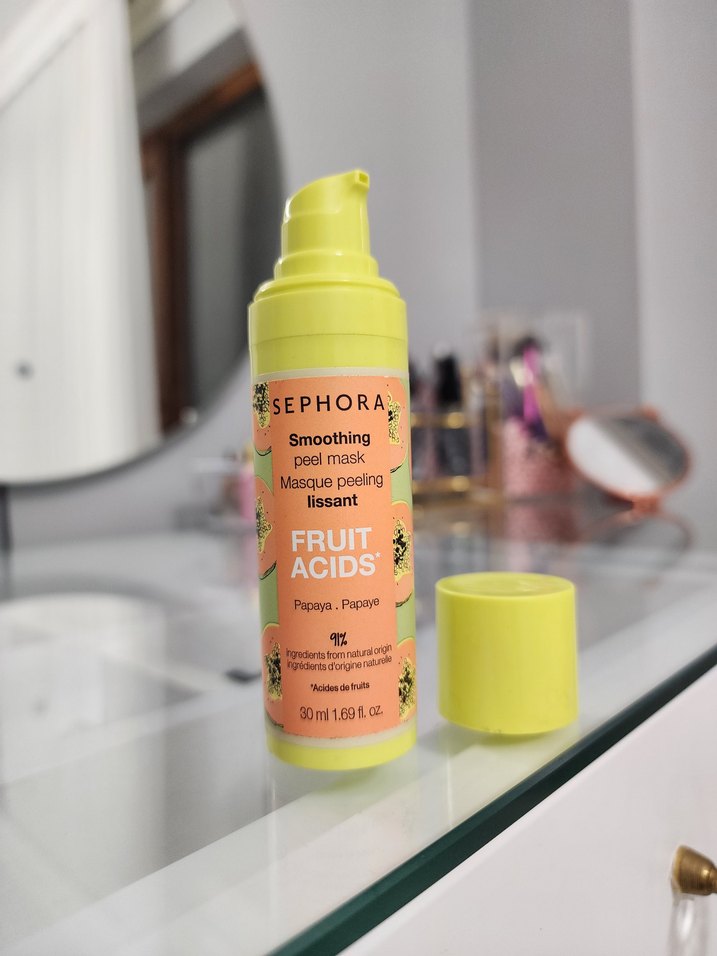 Sephora meyveli asitler içeren, cildi pürüzsüzleştiren peeling maskesi. 30 ml pastel sarı şişede sunulur. hiç kullanılmadı sıfır ürün