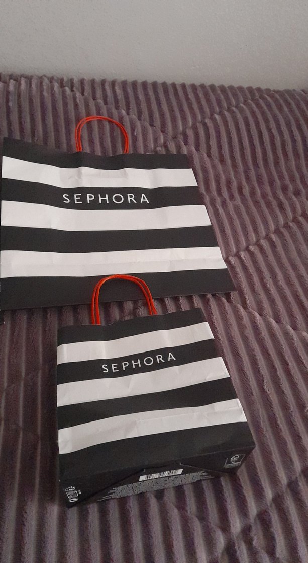 SEPHORA logolu baskılı desenli siyah kadın karton poset kapanışı ile günlük kullanıma uygundur. tane 50tl boş karton poset