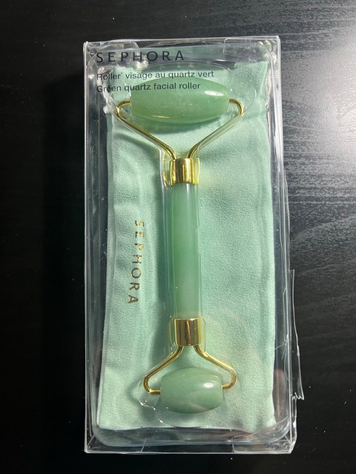 Sephora markalı yeşil kuvars yüz masaj aleti, cildi nazikçe masaj yapar ve canlandırır. Yumuşak bir bez torba ile birlikte gelir. Sephoradan hediye gönderildi, orjinal ve ambalajı açılmadı sıfır