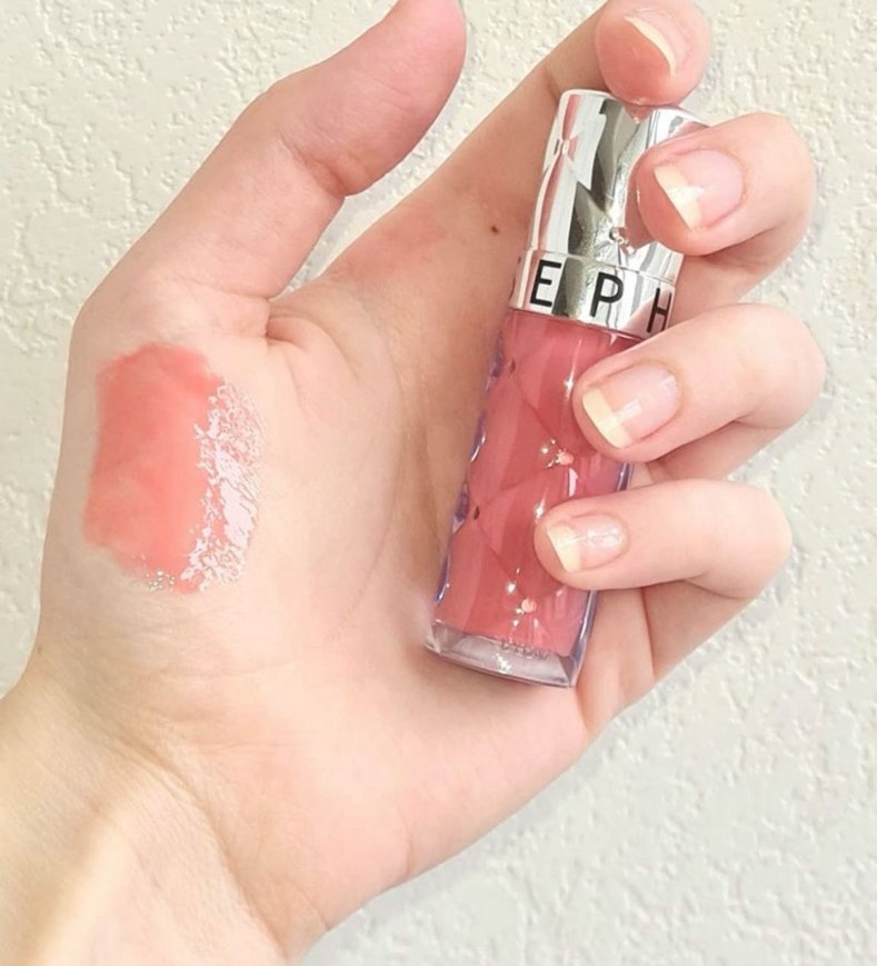 Yumuşak dokulu, parlak bitişli pastel pembe dudak parlatıcısı. Tüpü üzerinde 'P' harfi ve gümüş detaylar bulunur.