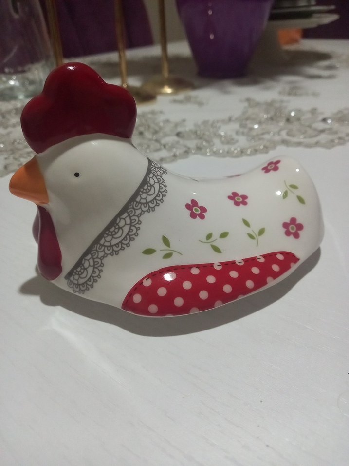 Renkli çiçek desenleri ve kırmızı ibikli seramik tavuk kapak, dekoratif amaçla kullanılabilir. KIRILAN KAVANOZUNUZA KAPAK OLARAK ALABİLIRSINIZ