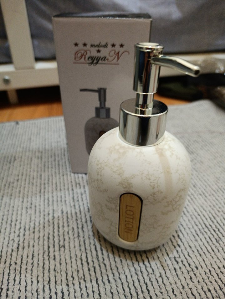 seramik sıvı sabunluk. Zarif çiçek desenli, kullanımı ve dolumu kolay.