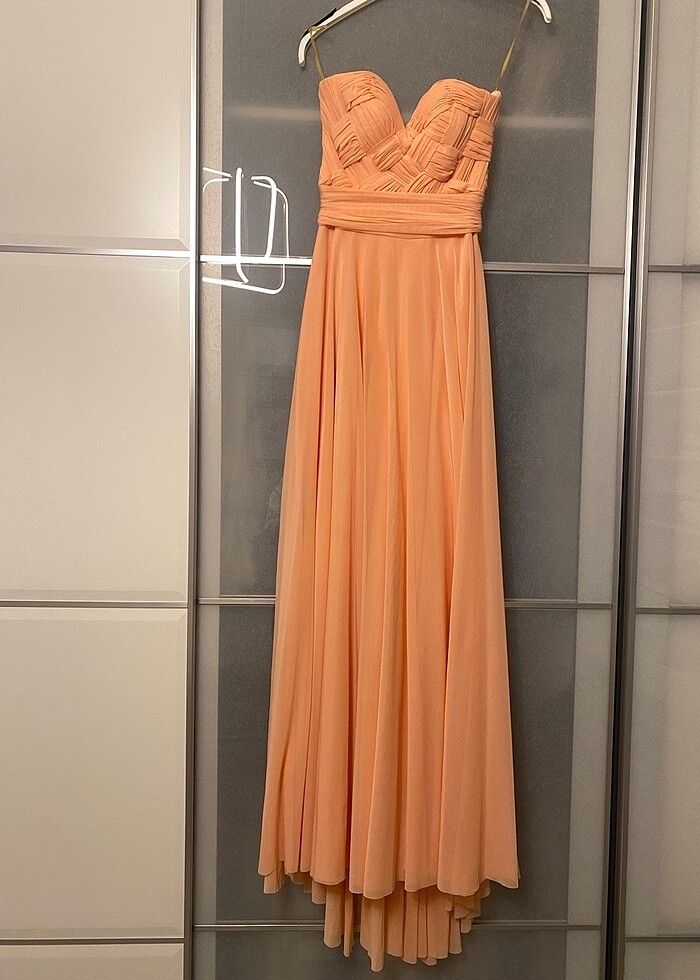 Şeref vural straplez abiye elbise. Bir kez giyildi. Kuru temizlemesi yaptırıldı. Tertemiz , lekesizdir. Arka eteği biraz uzundur. Somon renktir #balo # mezuniyet # abiye #düğün #nişan