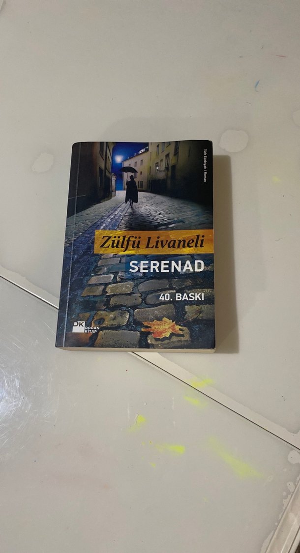 Zülfü Livaneli'nin Serenad adlı romanının 40. baskısı. Kapakta gece sokak sahnesi ve şemsiye tutan bir kişi yer alıyor.