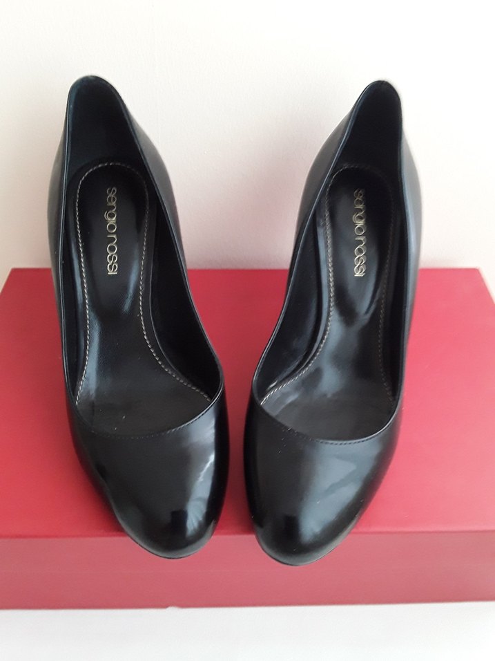 Sergio Rossi marka, siyah kadın stiletto. 35 numara, topuk 7 cm. İç ölçü 22,5 cm, ince ayaklar için uygun.