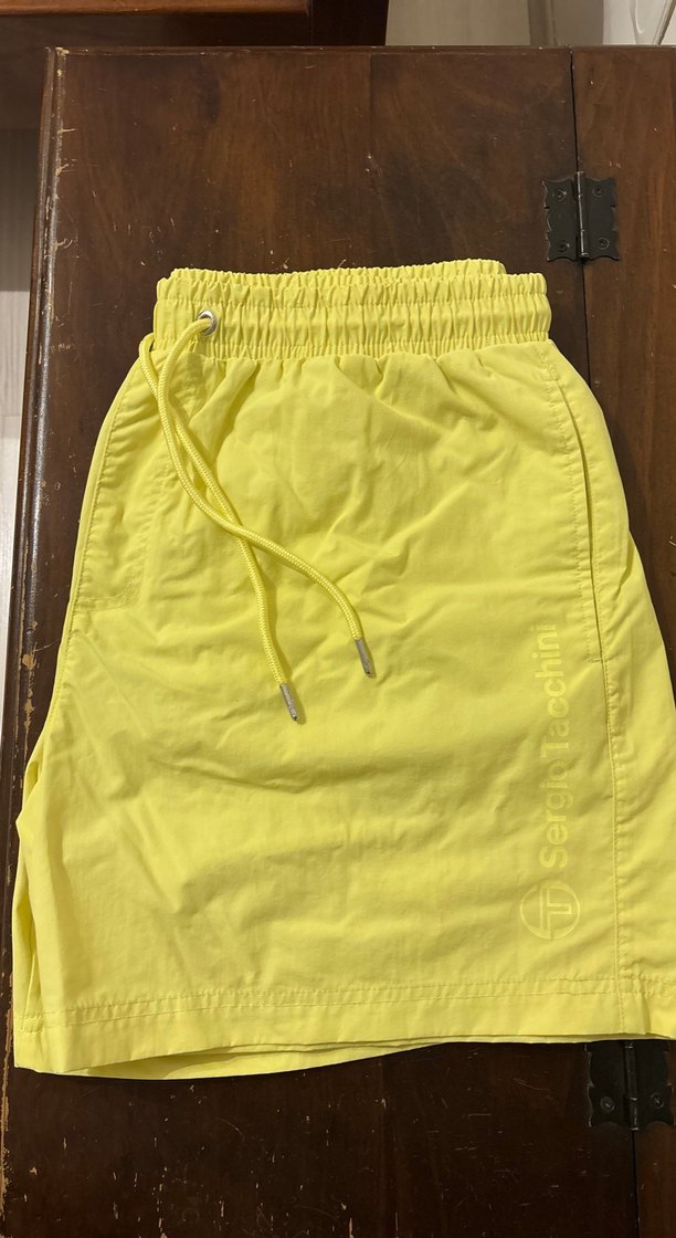 SERGIO TACCHINI Sari renkte, 2025 yaz sezonu, etiketi çıkartılmış fakat hiç giyimemiş. Normal boyda, XL Beden çabuk kuruyan Erkek Şort Mayo.