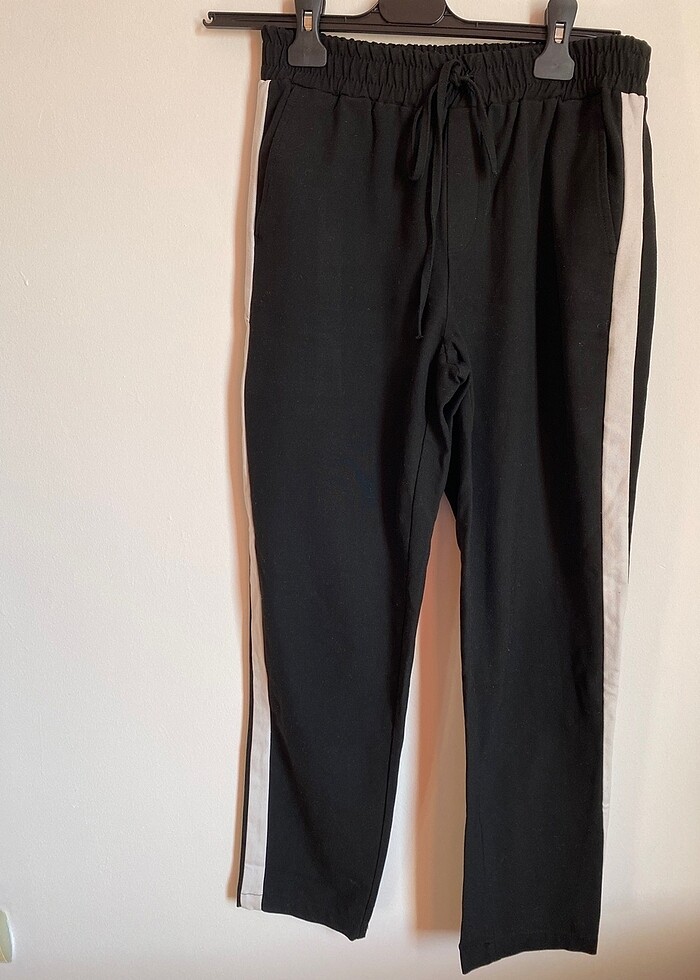 Yanlarında beyaz şeritleri bulunan cepli rahat pantolon sorunsuz