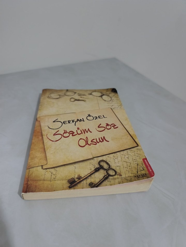 Serkan Özel'in 'Sözüm Söz Olsun' adlı romanı, eski tarz anahtarlar ve el yazısı notlar içeren kapakla birlikte. Temiz kullanılmıştır herhangi bir sıkıntısı yoktur ✅