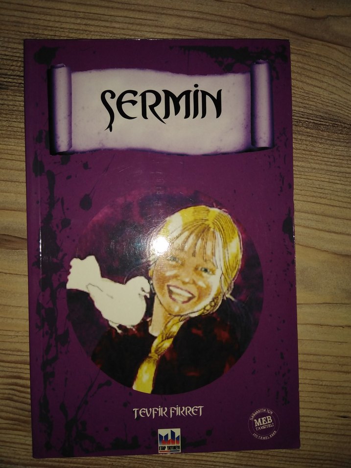 Tevfik Fikret'in yazdığı, kapağında neşeli bir kız resmi bulunan "Şermin" adlı mizah kitabı.