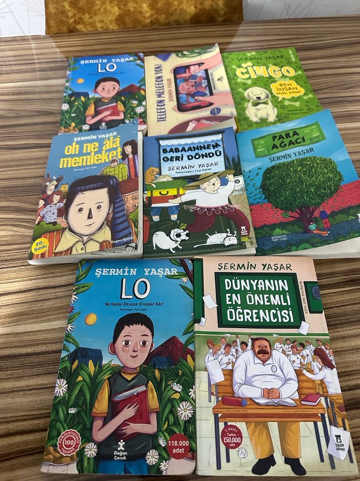 Adet fıyatı 150 TL Şermin Yaşar'ın renkli resimli, eğlenceli hikayeler içeren çocuk kitapları seti. Kitaplar arasında 'Lo', 'Dünyanın En Önemli Öğrencisi' gibi eserler bulunur.