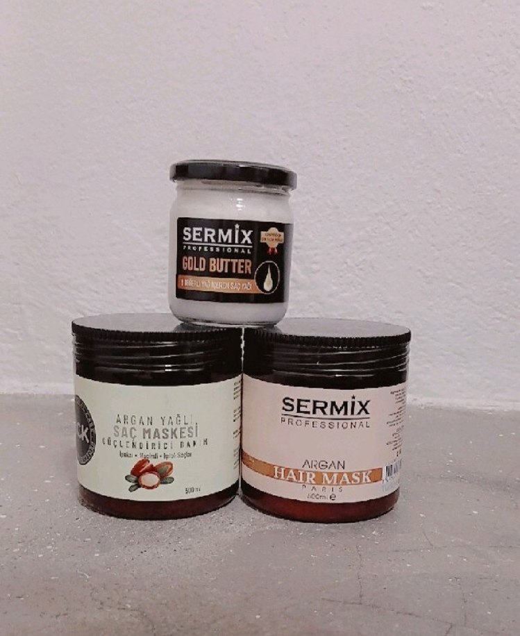 Sermix Professional argan yağlı saç maskeleri ve gold butter, saçları derinlemesine besler, nemlendirir ve parlaklık kazandırır.