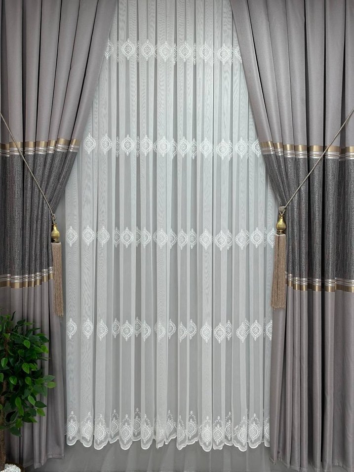 serpme motifli Tül Perde