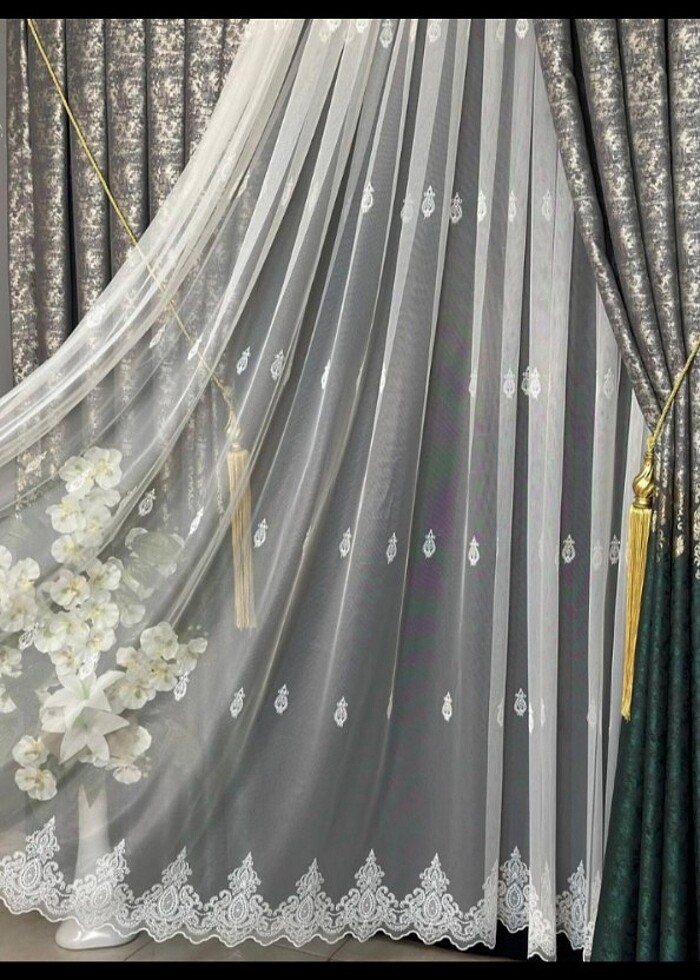 Serpme motifli etek ucu dantelli hazır perde ölçüleri 2 metre sık pile boyu isteğinize göre ayarlanir