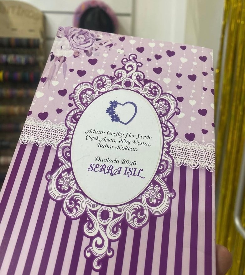 Serra Işıl'ın 'Dualarla Baya' romanı, çiçek ve kalp desenli kapak tasarımına sahip. Bahar Koksun'un şiirsel dizeleri içeriyor.