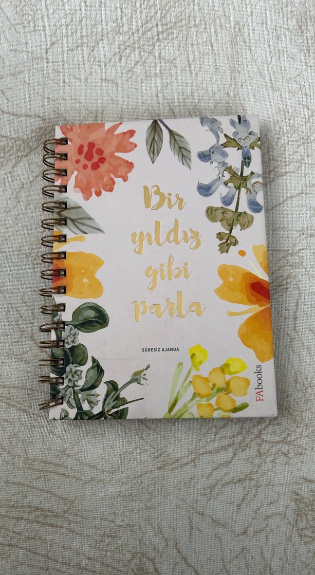 Sert kapak çiçek motifli süresiz ajanda. Çok iyi durumda kullanım için veya hediyelik