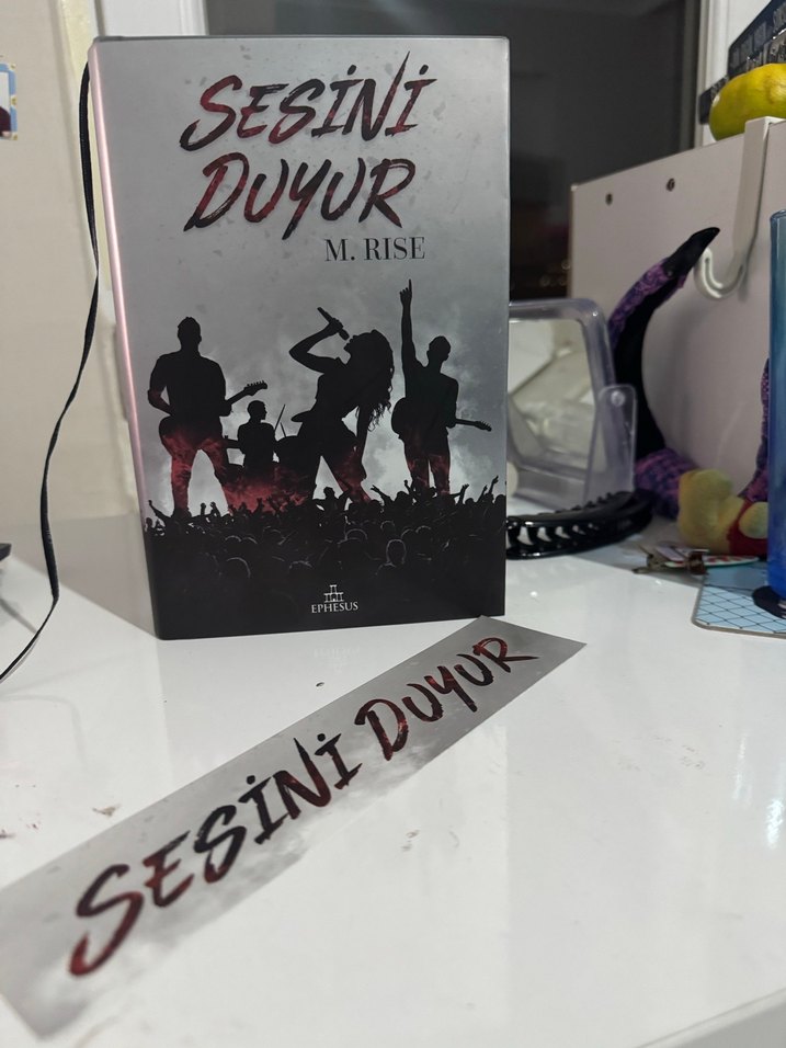 M. Rise'in "Sesini Duyur" adlı romanı, sahnede performans sergileyen bir grubun ve kalabalığın siluetlerini içeren kapağıyla müzik ve ifadeyi yansıtıyor.