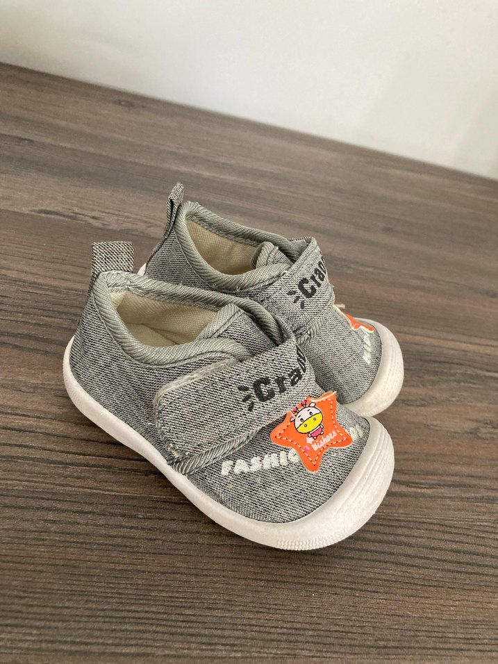 Gri renkli, kauçuk tabanlı erkek çocuk spor ayakkabısı, cırt cırtlı bant
