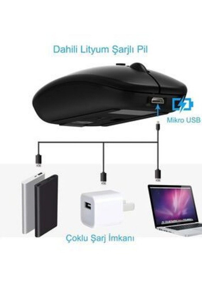 Sessiz Tıklama Şarjlı Çift Modlu Bluetooth Kablosuz 2.4Ghz Siyah Mouse