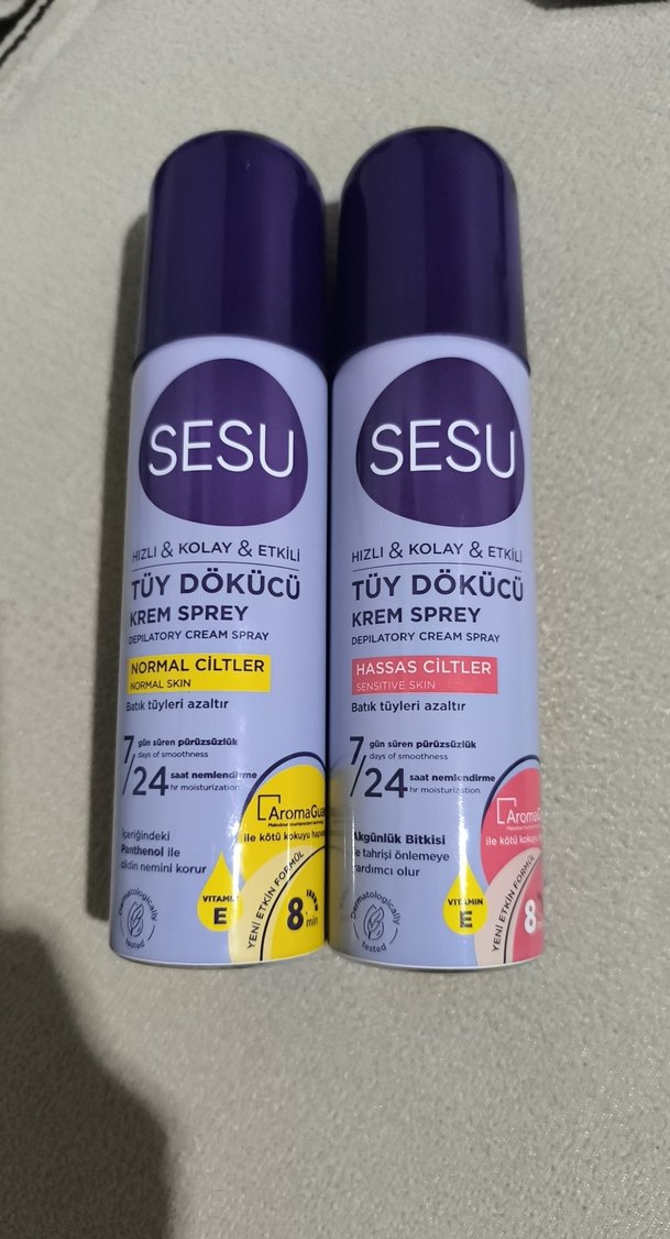 SESU tüy dökücü krem spreyler, normal ve hassas ciltler için ince tüyleri azaltır, 24 saat pürüzsüzlük sağlar. Vitamin E ve bitki özleri içerir.ikili fiyatıdır istenirse tekli de satılır
