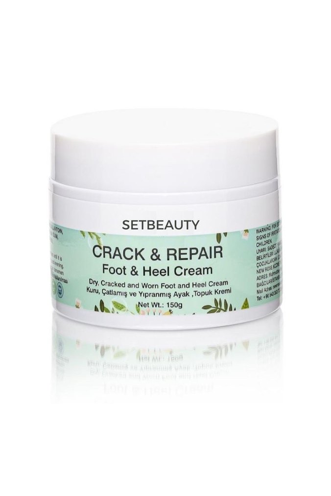 SetBeauty çatlak ve yıpranmış ayak ve topuklar için bakım kremi. Kuru ve çatlamış cildi onarmaya yardımcı olur. 150g kutu.