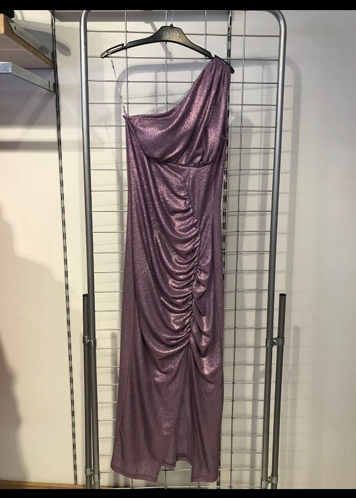 Tek umuz hic giyilmedi gogus yeri sungerli asdarli parlak gece elbisesi setre kalitesi