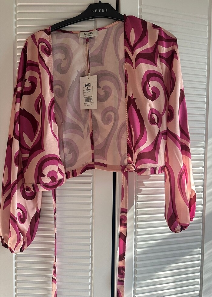 S beden rengi orkide belden kruveze crop gelen çok şık bir gömlek