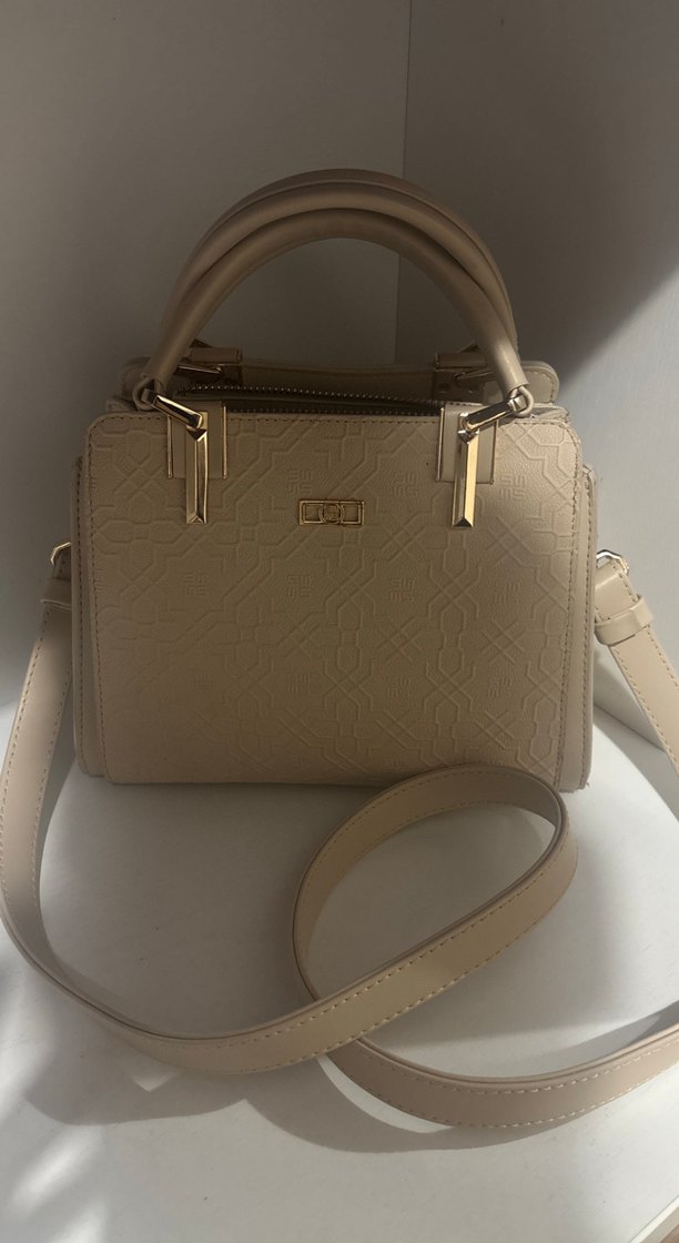 Bej deri yılan desenli, kemer detaylı kadın çanta. Hem elde hem omuzda taşınabilir, minimalist ve zarif günlük kullanım için uygun. (Kendi tarzıma artık uymadığı için satıyorum hiçbir kusuru yok etiketi mevcut)