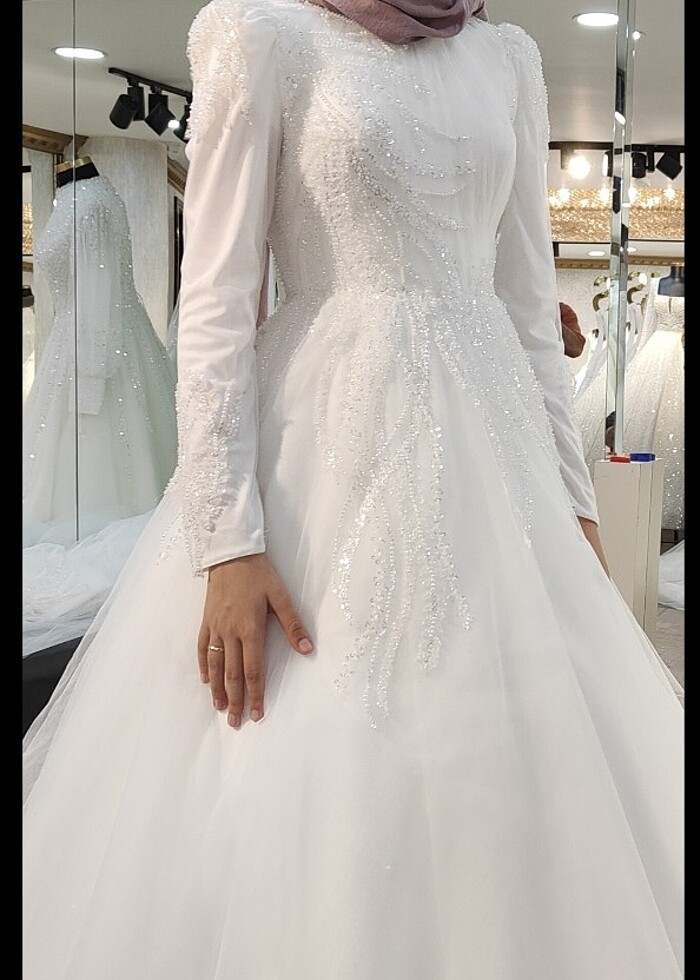 SETRMS tesettür gelinlik 1 kere nikahımda giydim. 36-38 beden uyumlu, arkası ipli Pazarlık payı vardır