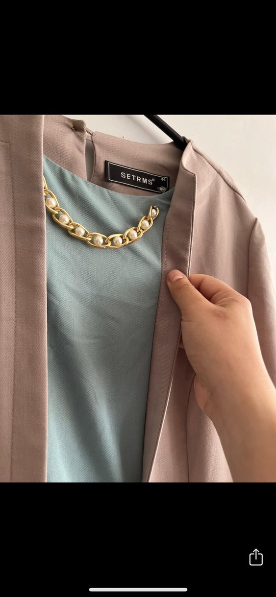 SETRMS markalı, parlak bej renkte zincir detaylı kadın el zinciridir. Günlük kullanım ve iş stiline uygun, desensiz tasarım. ✨