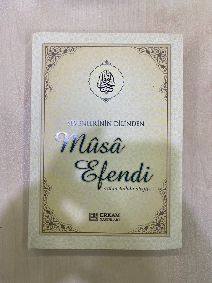 Erkam Yayınları tarafından yayımlanan "Sevenlerinin Dilinden Mûsâ Efendi" adlı dini kitap, geleneksel süslemelere sahip kapak tasarımıyla sunulmaktadır.