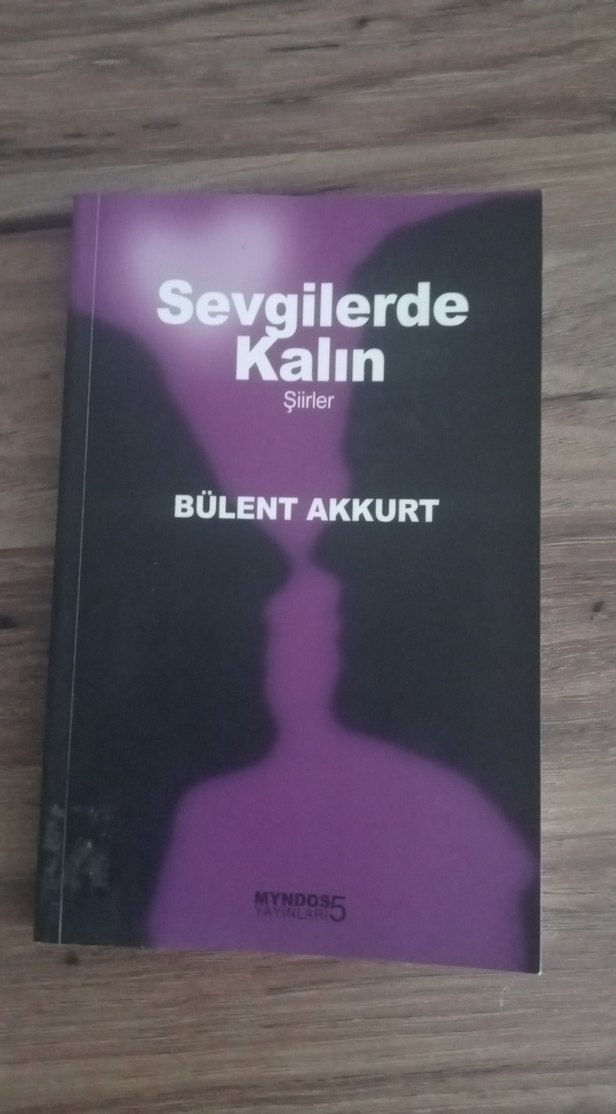 Bülent Akkurt'un Sevgilerde Kalın adlı şiir kitabı, aşk ve duyguları işler. Mor-siyah kapak üzerinde soyut figürler bulunur.